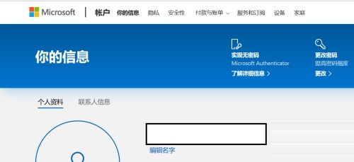 第四步:页面跳转后,页面显示账户名称,点击账户名称下方的“编辑名字”(如图所示)。