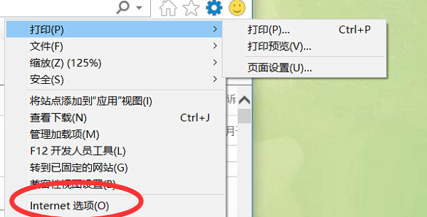 第二步:弹出菜单这里点击internet选项(如图所示)。