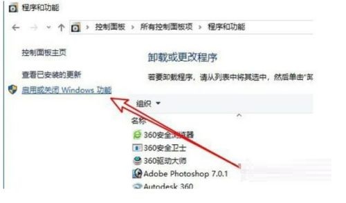 第四步:双击打开Windows10的控制面板,点击“程序和功能”的图标。在打开的程序和功能窗口中点击左侧的“启动或关闭Windows功能”的快捷链接(如图所示)。