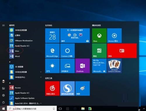 第一步:我们需要先点击任务栏"开始"按钮,弹出开始菜单选择"最常用→Visio"项(如图所示)。