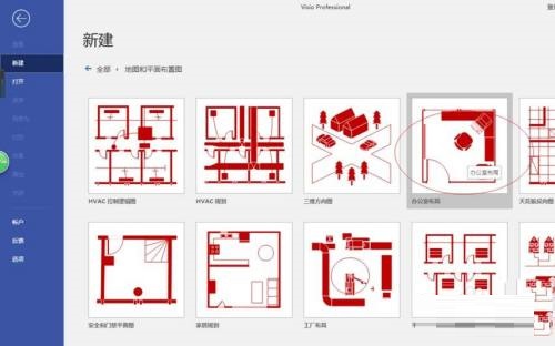 第三步:这时唤出"新建地图和平面布置图"选项,点击"办公室布局"图标(如图所示)。
