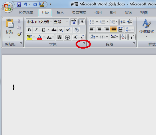 第一步:在word文档界面,用鼠标单击字体区域右下角的箭头(如图所示)。