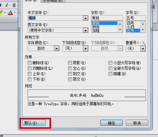 第五步:最后重新打开word文档,默认字体就是楷体(如图所示)。
