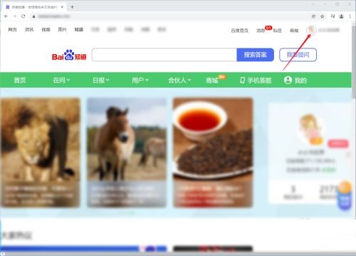 第一步:首先,在百度知道网页,点击右上方的头像(如图所示)。