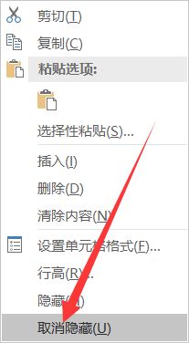 第四步:然后单击鼠标“右键”,选择最下方“取消隐藏”(如图所示)。