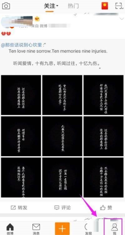 第二步:在微博页面,点击我功能(如图所示)。