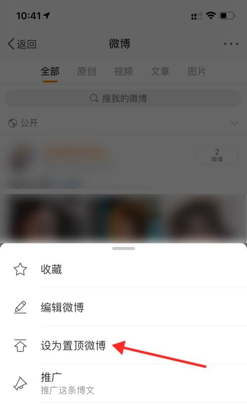 第三步:弹出来的内容里,点击“设为置顶微博”。