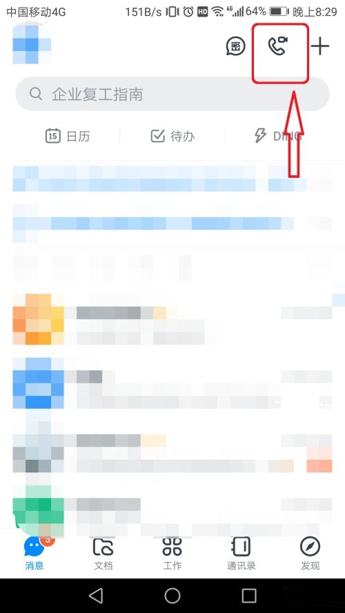 第二步:然后点击右上角“电话”图标(如图所示)。