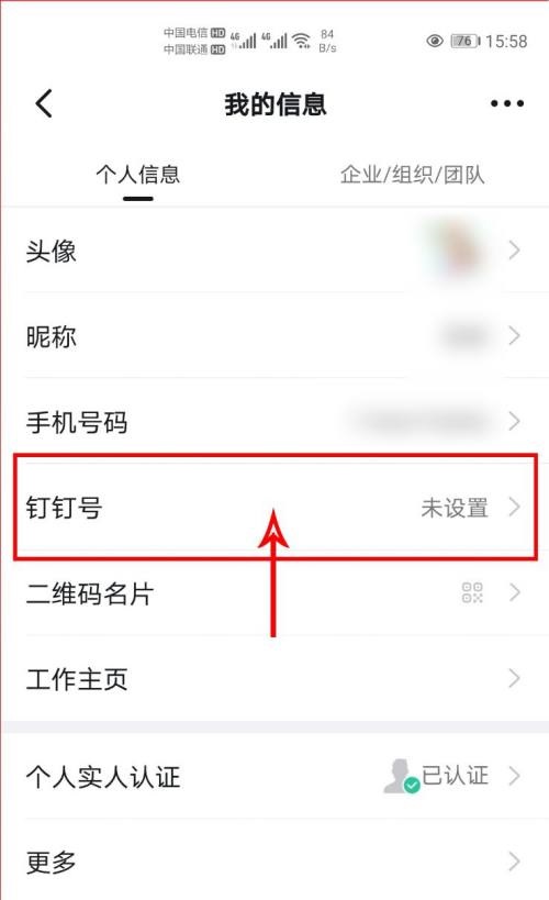 第四步:打开我的信息后,点击【钉钉号】(如图所示)。