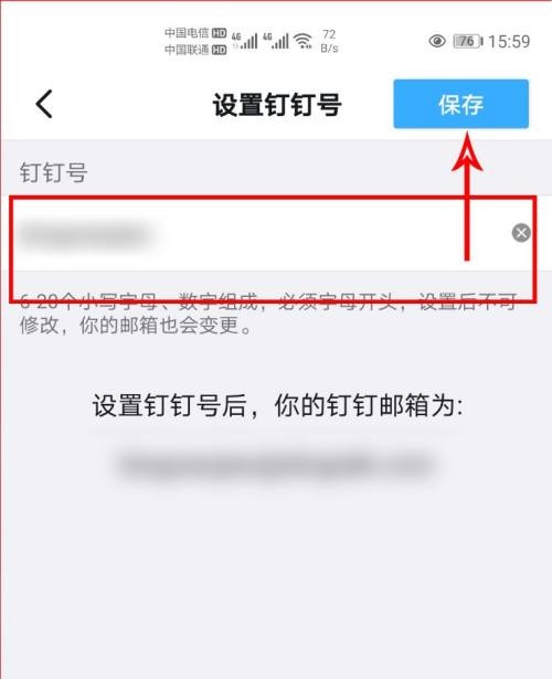 第五步:输入钉钉号,点击右上角【保存】即可设置完成(如图所示)。
