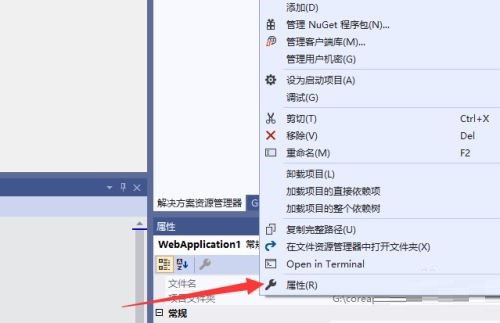 第一步:首先右键单击visual studio中的项目,选择下拉界面中的属性,如下图所示。