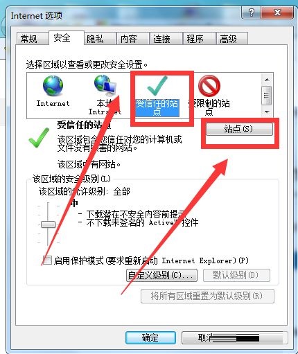 第四步:之后点击受信任的站点,选择站点(如图所示)。