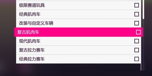 5、打开后,勾选复古肌肉车。