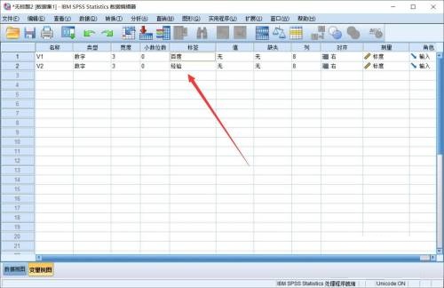 第一步:打开spss,输入数据,双击变量名称(如图所示)。