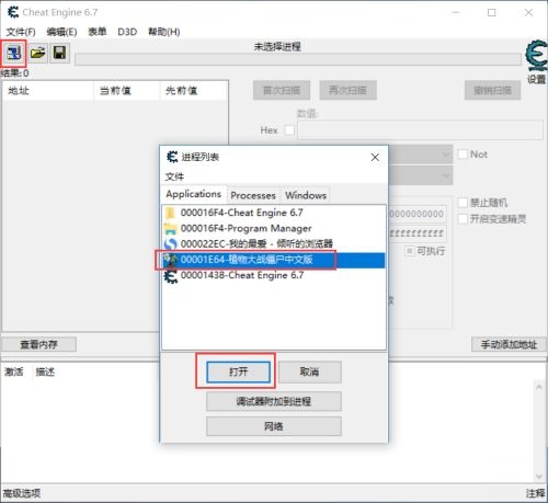 第一步:打开ce修改器。并加载运行植物大战僵尸(如图所示)。