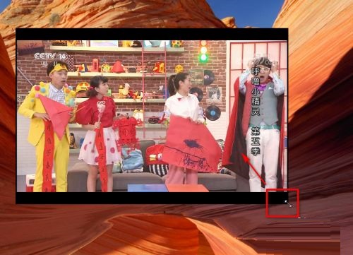 第六步:向“左”或“右”两个方向拖动鼠标,即可任意调整播放窗口大小(如图所示)。