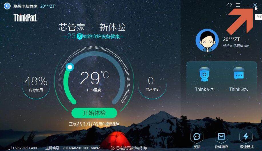 最后,关闭设置中心对话框和联想电脑管家界面即可。