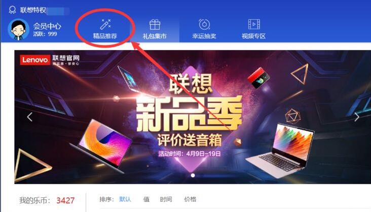 接着,在精品推荐页面看到一个写着小新专享,X月许愿墙专场的大画面,直接点击这个页面。