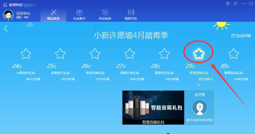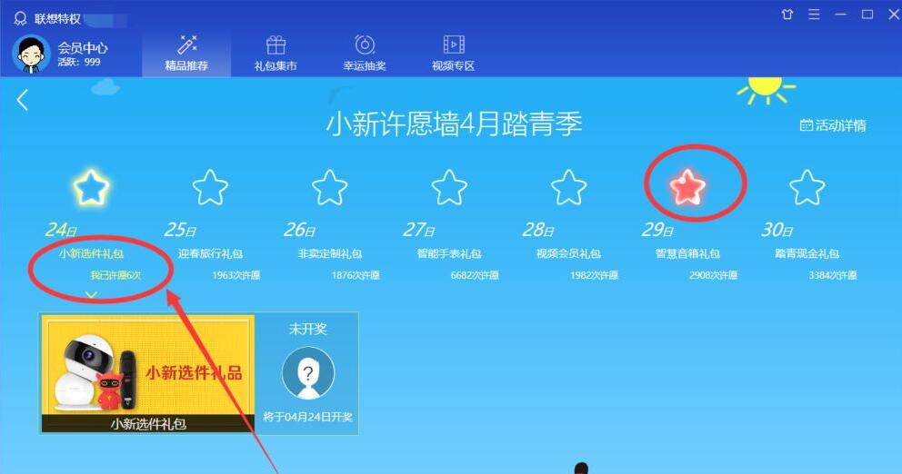 最后,许愿成功之后,会看到那个礼包上面的星星变成了红色,我们也可以在星星的下面查看到自己这个月中在这个礼包里的使用次数 。