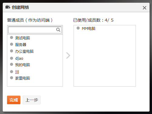 若选择对等网络,则需要选择网络成员后即可搭建成功。