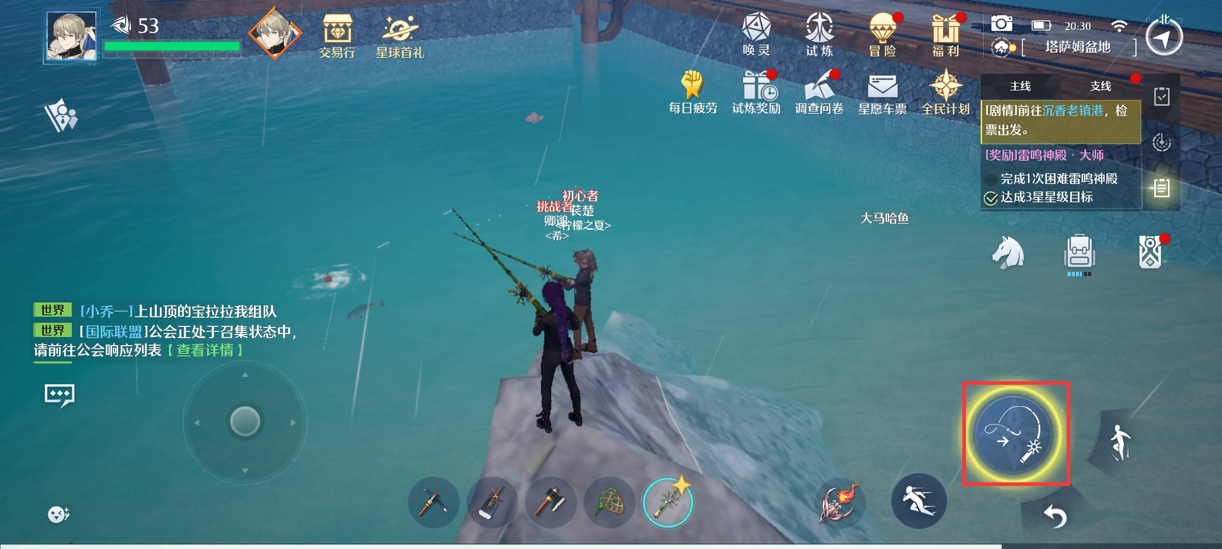 2、然后在海边点击鱼竿。