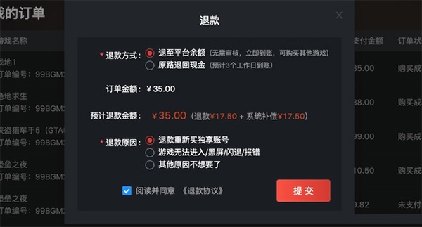 一、共享版:购买时间3小时内的,支持极速退款,用户可以在游戏管家或者游戏商城自助申请退款,提交申请后系统自动审核实时到账;