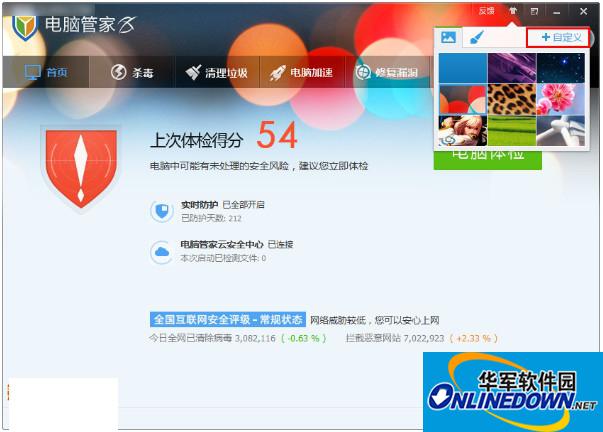 4.电脑管家特别精选了8张皮肤,这8张皮肤主题分别为草地、宇宙、光斑、风车、鲜花、科技、游戏和豹纹,每种皮肤主题都有一个诗情画意的名字。有兴趣的朋友快来体验吧!