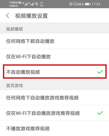 第五步:最后选择“不自动播放视频”就可以了(如图所示)。