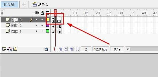 第九步,现在新建一个图层,并在第2帧和第3帧插入空白关键帧