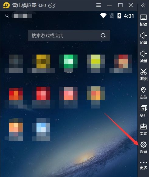 第二步:进入雷电模拟器后,点击“设置”。