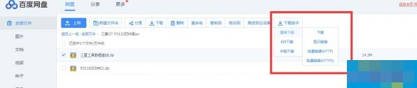 下图是安装完成的效果,在百度网盘选中文件,点击助手按钮,选择合适的方法直接下载文件