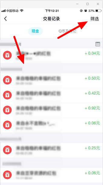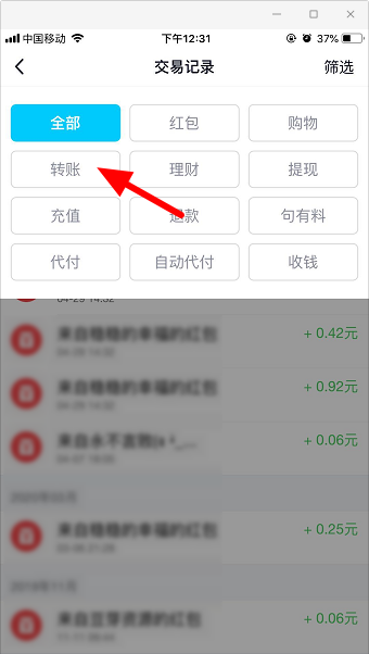 第五步:这里就可以看到交易记录了,还可以点击“筛选”。