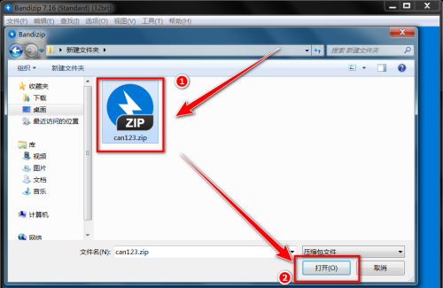 第二步:选择压缩文件,点击“打开”。
