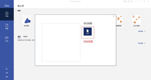 第二步:在弹出的页面中点击创建, 来新建空白画布。