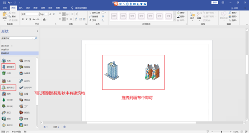 第六步:可以看到路标形状中有建筑物, 拖拽到画布中即可。
