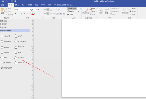 第六步:接下来我们就可以利用左边栏的“形状图”以及工具栏中的工具进行绘制故障树分析图了。如下图: