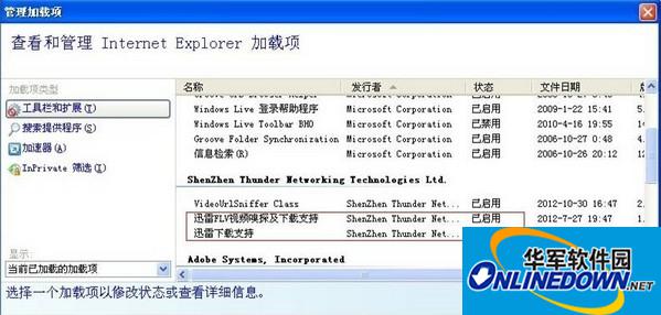 3、如果管理加载项内并没有迅雷下载支持的控件请到这里重新下载迅雷并先卸载再重新安装,不要覆盖安装。