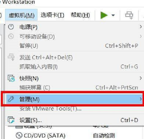 第三步:点击上方菜单栏的虚拟机选项。