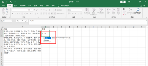 第二步:然后输入公式“=len”,选择出现的公式。