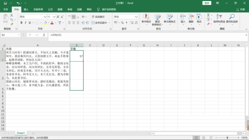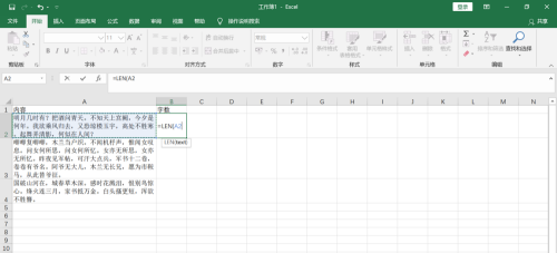 第四步:按回车键即可显示字数,如果需要整列统计的话直接填充就可以了。