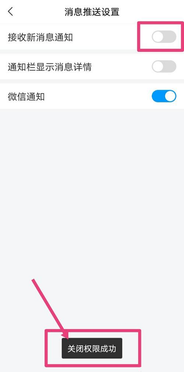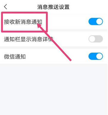第四步:在“消息推送设置”页面,点击“接收新消息通知”后的按钮。