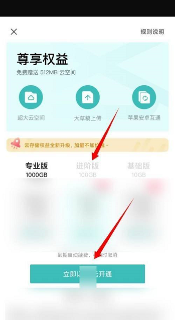 第三步:最后选择基础版、进阶版或者专业版,点击底部的开通按钮即可。