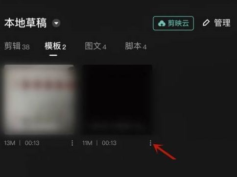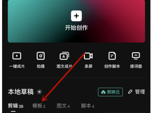 第一步:首先在剪映剪辑中,本地草稿,点击模板。