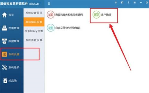 第二步:进入系统设置页面,选择基础编码设置,点击客户编码。