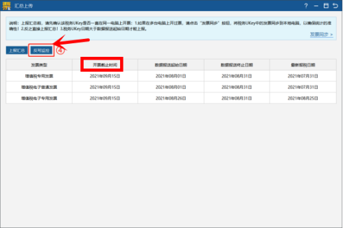 第三步:上报汇总成功,点击反写监控,查看开票截止时间,为下个月的中旬时间点,则表示本期抄报税成功。