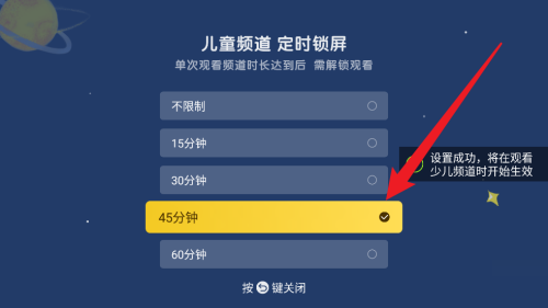 第六步:勾选成功之后少儿频道就会限制观看时长。