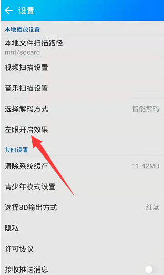 第二步:在设置页面上方点开左眼开启效果(如图所示)。