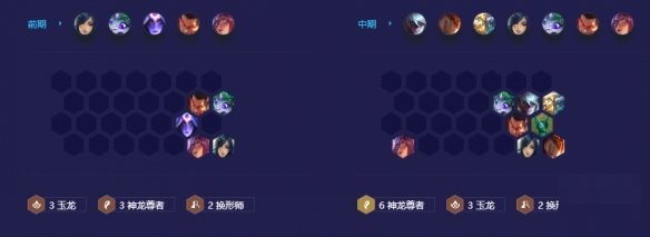前期过渡基本上是利用神龙尊者作为核心,搭配其余强势单卡即可,优先升七人口搜二星李青以及妮蔻和奥恩,其次就可以上八人口卡利息搜三星李青,如果血量不健康也可以选择在七人口搜三星李青