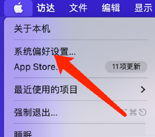 第一步:在系统菜单栏中,点击系统偏好设置。
