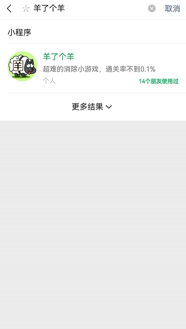 2、点击搜索小程序,输入“羊了个羊”。